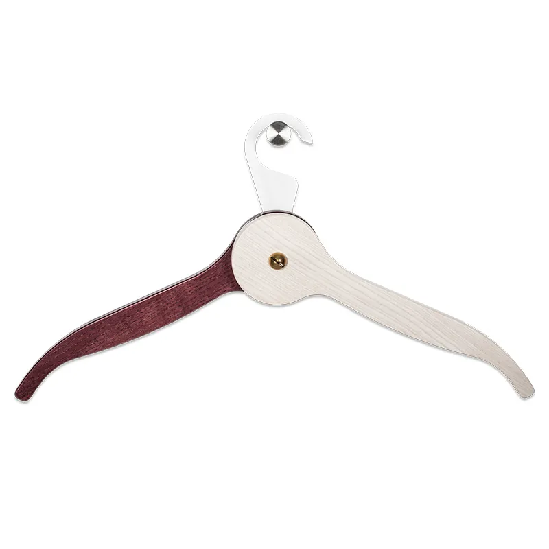 Realizzato in legno massello di frassino certificato FSC, con meccanismi placcati in oro 24 carati. La versione Polo Cedar utilizza legno di cedro canadese, che rilascia lentamente una fragranza naturale, proteggendo abiti e armadio.