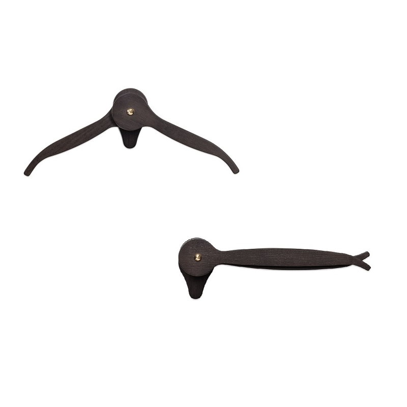 The Casanova set—two hangers and one trousers holder—moves gracefully between function and design. Foldable arms hold up to two pairs of trousers, then close discreetly when not in use.