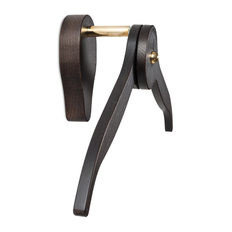 Elegant wall-mounted hanger set with trousers holder. FSC wood, 24k gold details, foldable arms. 7 finishes. Perfect for bedroom, bathroom or hotel rooms. Made in Italy.
